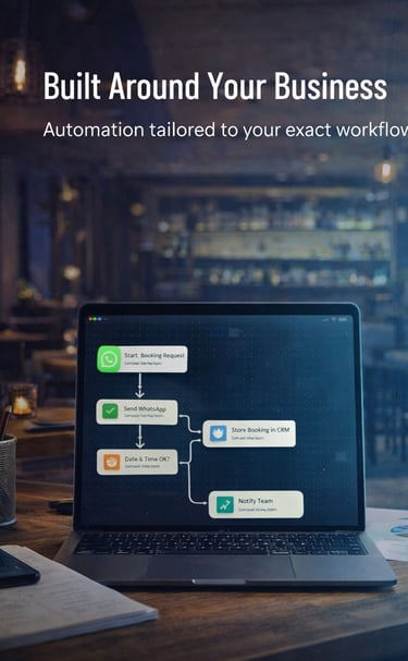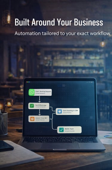 We build solutions such as booking and inquiry flows, internal task automation, lead routing, CRM and messaging integrations, reporting dashboards, and multi channel communication systems.